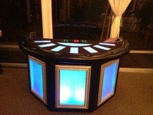 Let us turn your event, or party into a gaming room straight out of Las Vegas! Professional dealers, croupiers and décor are added to enhance the excitement. Tables available are Black Jack, Roulette, Money Wheel, Craps Table, Caribbean Poker, Scenery and Slot Machines. Individual Tables include chips, cards, dice, dealers. Personalized money is also available. We have a variety of suggested packages.